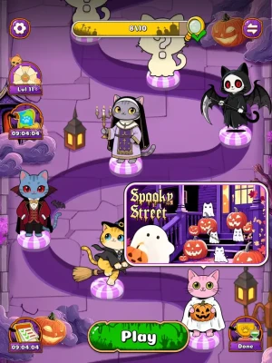 This special Halloween update introduces an exciting new structure — Main Levels and Collection Levels. Progress through the main stages to unlock special themed collections filled with uniquely designed spooky scenes. Completing each collection rewards you with an exclusive Halloween‑themed cat character for your in‑game gallery — a perfect treat for collectors and puzzle lovers alike.