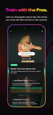 - Mirror Me: Side-by-side coaching to match timing, refine style, and sharpen technique in real time and post your final shot to your socials.
