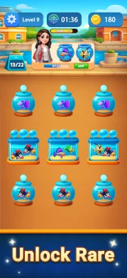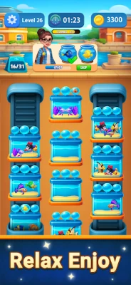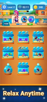 Sort colorful fish into the correct aquariums and clear each level.