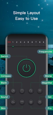 Features: - Strobe: Strobe mode with 10 different frequencies. - SOS: Built-in SOS signal. - Color screen: Make your phone screen colorful. - Morse: Send morse code in case of emergency. - Compass: It can help you find the direction. - Magnifying Glass: It can help you magnify small things.