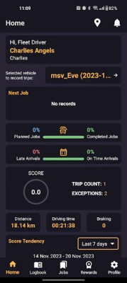 The application enables drivers to view their daily tasks and jobs, view their trips, as well as detailed information about the vehicles they drive. The application also enables drivers to participate in fleet safety programs.