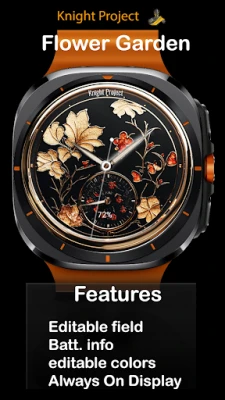 Features of Flower Garden: - Mechanical second hand - Battery level - Smooth gear animation