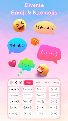 DIY cool emoji Keyboard includes a wide selection of themes and fonts that you can apply instantly. From colorful, cute, and aesthetic designs to elegant and stylish themes - you’ll find the combination for your mood.