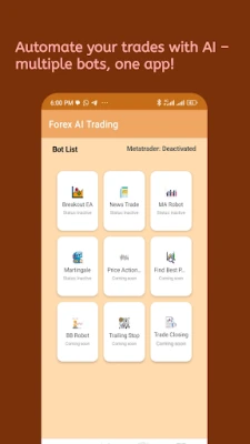 Designed for both beginners and experienced traders, the app offers AI-driven Forex signals, automated strategies, and advanced analysis tools — all in one place.