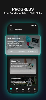 Our 4-level ball mastery program, created by UEFA-certified coaches, is designed to teach key ball control techniques and improve on-field performance. Each level helps players of all abilities progress in their skills. We'll help you stay on track and build determination with disciplined training. Just 20 minutes a day can lead to maximum skill improvement and success on the field. Train consistently, and we promise:
