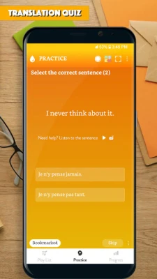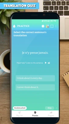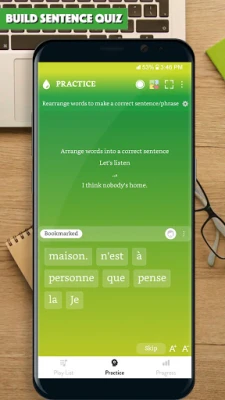 The app provided you with thousands of common sentences used in everyday life, with audio for each sentence. All the app's features are designed to help you learn to make French sentence and improve the main skills: Listening to a sentence, writing (making) a sentence correctly, speaking a sentence/a phrase correctly.