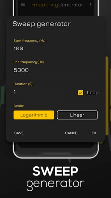 Frequency Generator Sound player lets you generate a sine, square, sawtooth or triangle sound wave with a frequency between 1Hz and 22000Hz (hertz). It produces accurate tone & soundwaves while being simple and easy to use.
