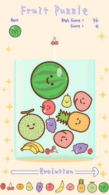 [Game Features] - This is a so-called falling object game. - Now supports 8 languages. - You can set the upper limit of fruits that can be dropped as an option. - Devices equipped with a gravity sensor can move fruits sideways.