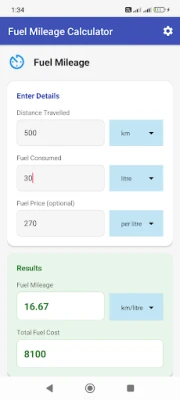 - Fuel Mileage — Find out your vehicle's fuel efficiency from distance traveled and fuel used