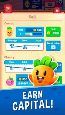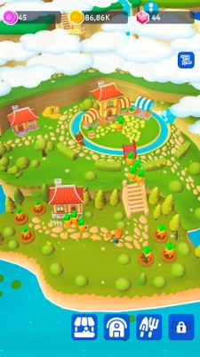 You’ll get an island to plant trees and veggies. To proceed in the game, you’d need to upgrade the veggies, complete the tasks, level up and collect the money. All those steps will give you a possibility to unlock more and more islands gradually empowering your business. Oh, and let's not forget our Benjamin, he'll be your guide in this magic cute veggie world.