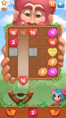 Use the slingshot to merge the candies with matching numbers into one big candy. Try to create huge combos by merging more than one candy at a time to feed even MORE candy. But watch out, rocks will appear on the field blocking the candies. They can easily be destroyed by merging candies beside them, but don't underestimate those solid blockers!