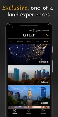 Download our app and discover Gilt's ever-changing assortment of top designers and one-of-a-kind experiences – all right at your fingertips. Shop on the go and get incredible steals for women, men, kids and home to inspire every facet of your life. Plus, find deals for unforgettable experiences available in your city.