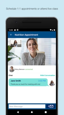 On the app, you can schedule and access live appointments with wellness specialists, track your progress, access customized nutrition meal plans, watch on-demand videos and live fitness classes, attend support groups, track progress, and so much more. All these features can be accessed on-the-go or in the convenience of your home. Virtual, live consultations and classes are available seven days a week.