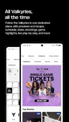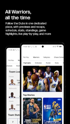 • Personalized "For You": Effortlessly stay informed about upcoming Warriors and Valkyries games at Chase Center, tailored to your interests.