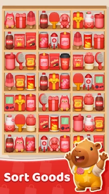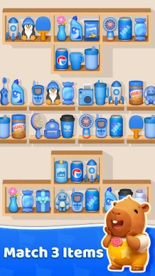 Match and organize cute 3D goods — from snacks and drinks to household items.