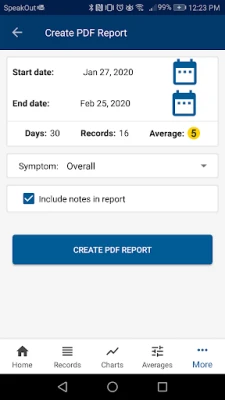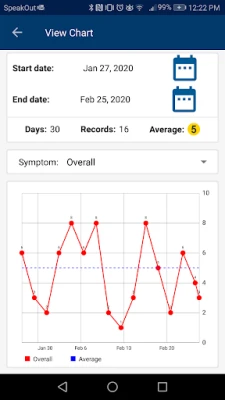 Record and track your symptoms daily. Review and get insight into your health symptoms using dynamic statistics and charts. Create and view detailed reports that can be emailed and shared with doctors and health professionals. Synchronize and backup your data in the cloud.