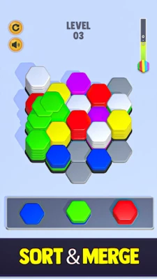 - Merge colorful hexagons in Offline Sorting Puzzle Adventure