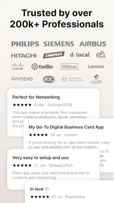 - Seamlessly share your digital business card via Google Wallet, QR codes, NFC tags, and popular messaging apps.