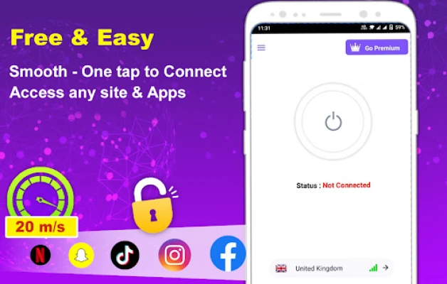 ✓ Simple, one tap connected to the VPN