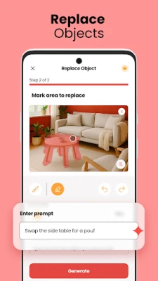 Swap any piece of furniture in your photo with our remodel AI tool with just one tap. Curious how your space would look with a new couch, table, or lamp? Upload your room photo and test realistic replacements before you buy.