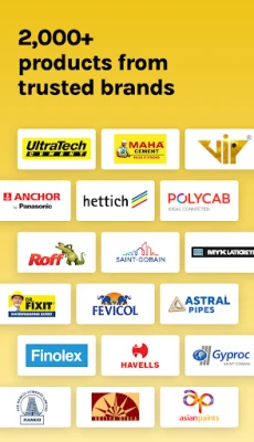 • Thousands of products: Everything from cement, plywood, and tiles to paint, plumbing supplies, and electrical supplies.