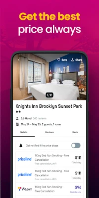 Cheap Hotel booking app helps you to compare and book rooms at the lowest price online on a single click. Our hotel app provides the latest cheap hotel deals by comparing major hotel booking providers like Airbnb, Vrbo vacation rentals, Expedia, booking com, Hotels com, Priceline com, Trip advisor, Trivago, Cheap hotels, Snaptravel, Hoteltonight, Agoda com, & many more.