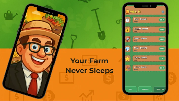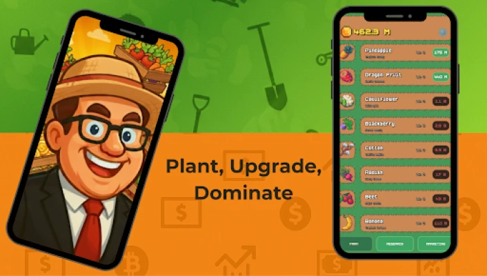 Manage your farming tycoon business like a real entrepreneur! Make strategic decisions about crop investments, upgrade priorities, and expansion timing. Experience the thrill of watching your idle