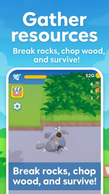 Chop wood, mine stone, and gather resources to construct tents, workshops, kitchens, and storage areas. Expand your camp step by step!