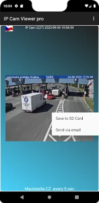 Add, Delete, Cancel, Save, Test Connection, Up or Down to scroll through IP Cams for quick editing. With a long click on the displayed cam you can save or send the picture.
