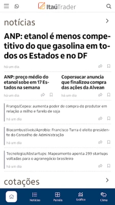 Com o app do Itaú Trader, você recebe em tempo real conteúdos relevantes sobre o mercado financeiro e agronegócio.
