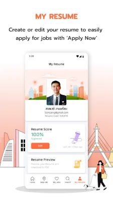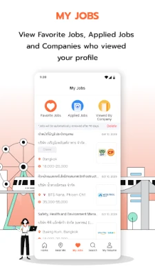View your records of applied jobs, favorite jobs, and companies that viewed your JobThai resume.
