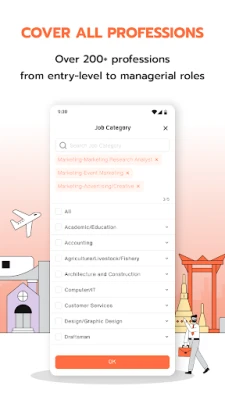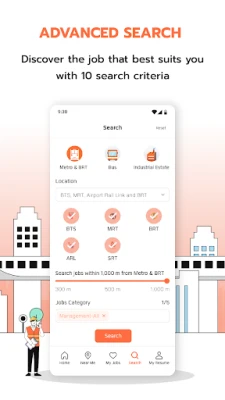 Easily find your perfect job match by choosing from up to 10 search categories such as office locations, job categories, work from home positions, industries, salary ranges, industrial estate areas, commuting options (BTS, MRT, SRT, ARL, BRT, Bus Routes) or specific keywords.