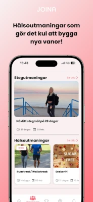 • Delta i hälsoutmaningar – Delta tillsammans med hundratals andra i utmaningar för att bli lite bättre varje dag. Med Joinas utmaningar blir det enkelt att få det gjort och du håller dig motiverad hela vägen. Anta olika hälsoutmaningar på mellan 7-40 dagar och bli belönad varje dag. Se hur varje steg tar dig framåt i din hälsa och personliga utveckling.