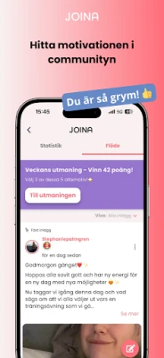 • Joina communityn – Ta del av flödet från alla andra som deltar. Joina handlar om att få och ge support till varandra. Ta del av tips, inspiration, stöd och peppa varandra mot målet.