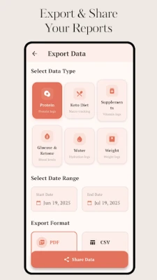 * Data Export: Export your progress to PDF or CSV for nutritionists or personal use.