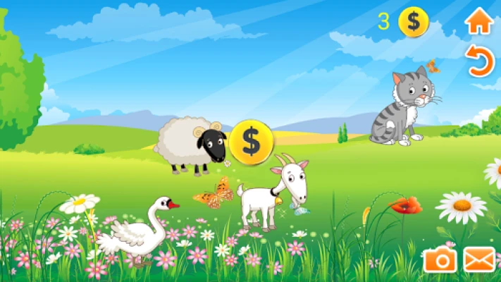 This game consists of 3 landscape backgrounds and 34 kinds of animals with animation, and audio effects.