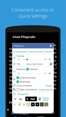 Text can be reflowed and annotated. Volume keys can be configured for scrolling and backgrounds customized.