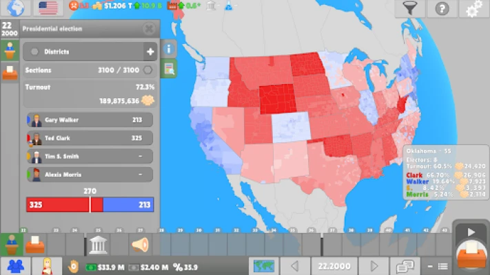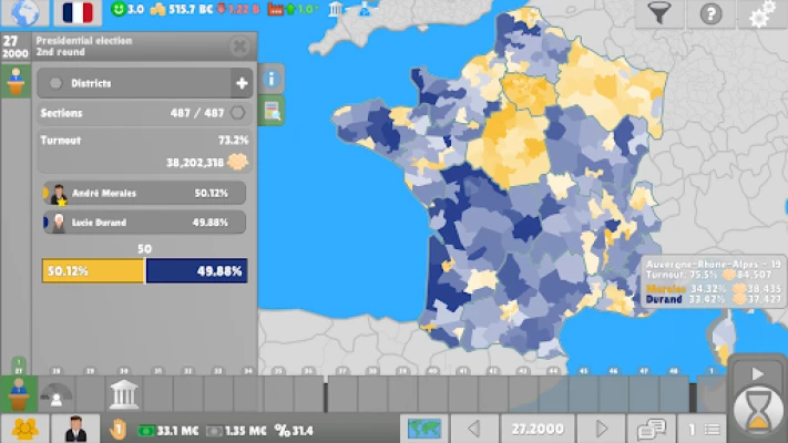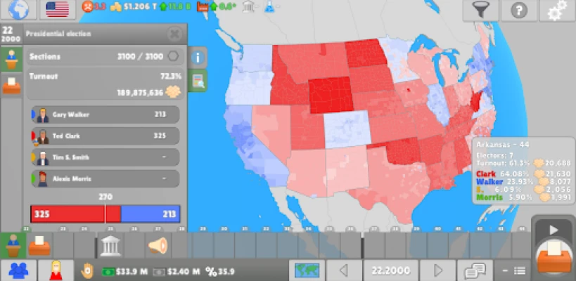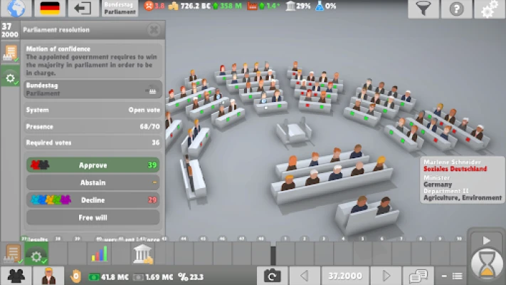 ◉ Discover diverse political systems across dozens of countries, ranging from first-past-the-post to proportional d’Hondt representation. ◉ Control a politician within a party and choose to play for national prestige, party influence, or personal gain. ◉ Propose, debate, and vote on bills in the plenary that impact the economy, happiness, and global stability. ◉ Forge ties with organizations, negotiate deals with other parties, or unite in a coalition. ◉ Make use of corruption and other shady activities to raise black money or to pass controversial laws in Parliament or Congress.