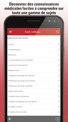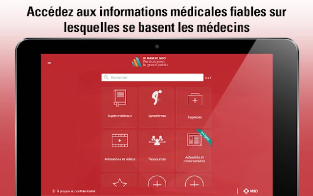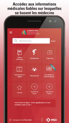 L’appli d’informations médicales des Manuels MSD pour le grand public, pour une référence à portée de main, propose :