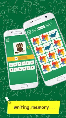 Games ★ Listen sound and choose picture ★ Look picture and choose right text ★ Find same picture ★ Using memory ★ Look picture and write