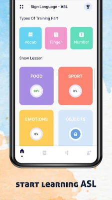 Learn the different phrases like vocabulary, finger numbers, and more categories. Study the words with the GIF video and along with the explanation of the word. You can slow the GIF speed to observe the sign and learn it. In each category, there will be a different number of lessons.