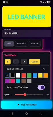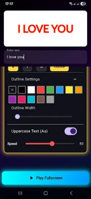 Display scrolling text messages in full screen with smooth animations, custom fonts, vibrant colors, and glowing background effects — perfect for concerts, parties, or cheering your favorite team!