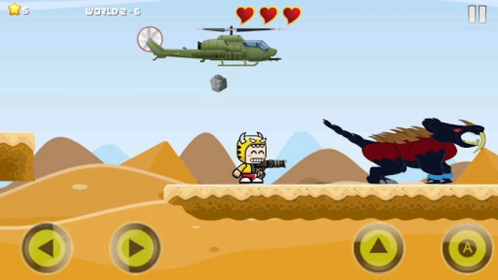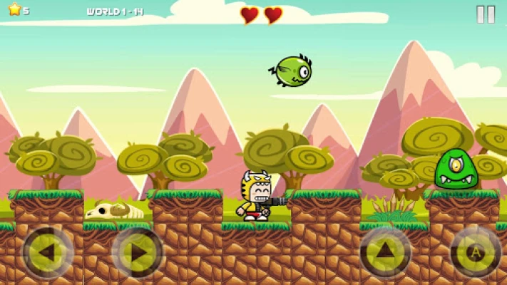 Tap on left arrow button to move left, Tap on right arrow button to move right, Tap on up arrow button to jump and tap on 'A' button to shoot. Beware of traps and complete all the levels.