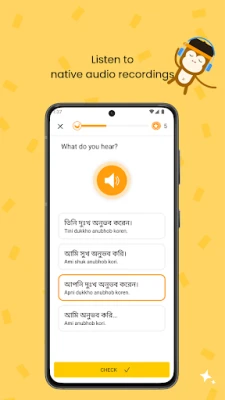 Our free Bengali language learning app is designed to make learning Bengali as easy and as fun as possible! Using a variety of mini-games and interactive learning techniques, you’ll be able to immerse yourself in the Bengali language using just your smartphone!