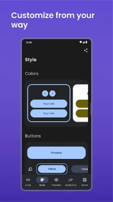 2. Customize your bio with themes and button styles that match your personal or professional brand.