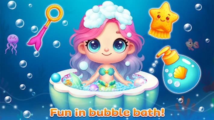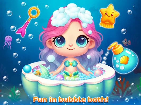 Little Mermaid Bath & Dressup : Newborn mermaid is ready for his first bubble bath. Wash him properly and get him dressed.