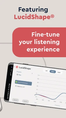 - LucidShape to personalize your hearing experience - live and in real time - streaming audio EQ for treble, mids and bass - ambient sound mixing - selecting programs for multiple listening environments - changing the volume - controlling left & right hearing aids together or independently