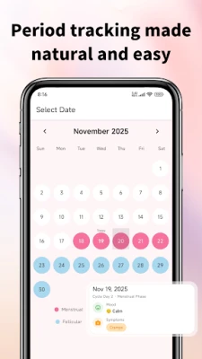 📊 Cycle InsightsView your 8-day weekly calendar on the home screenComplete monthly calendar with cycle markersTrack your cycle phases and statusDetailed cycle statistics and trends