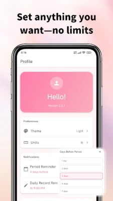 ⏰ Smart RemindersCreate custom reminders for your periodSet medication, hydration, and exercise remindersCustomize reminder times and frequency