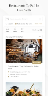 Discover and book the finest restaurants in the UK using the free and stylish Guide of all highly awarded restaurants. If you love dining out, subscribe to the Club to enjoy instant rewards and invitations at the best destinations.